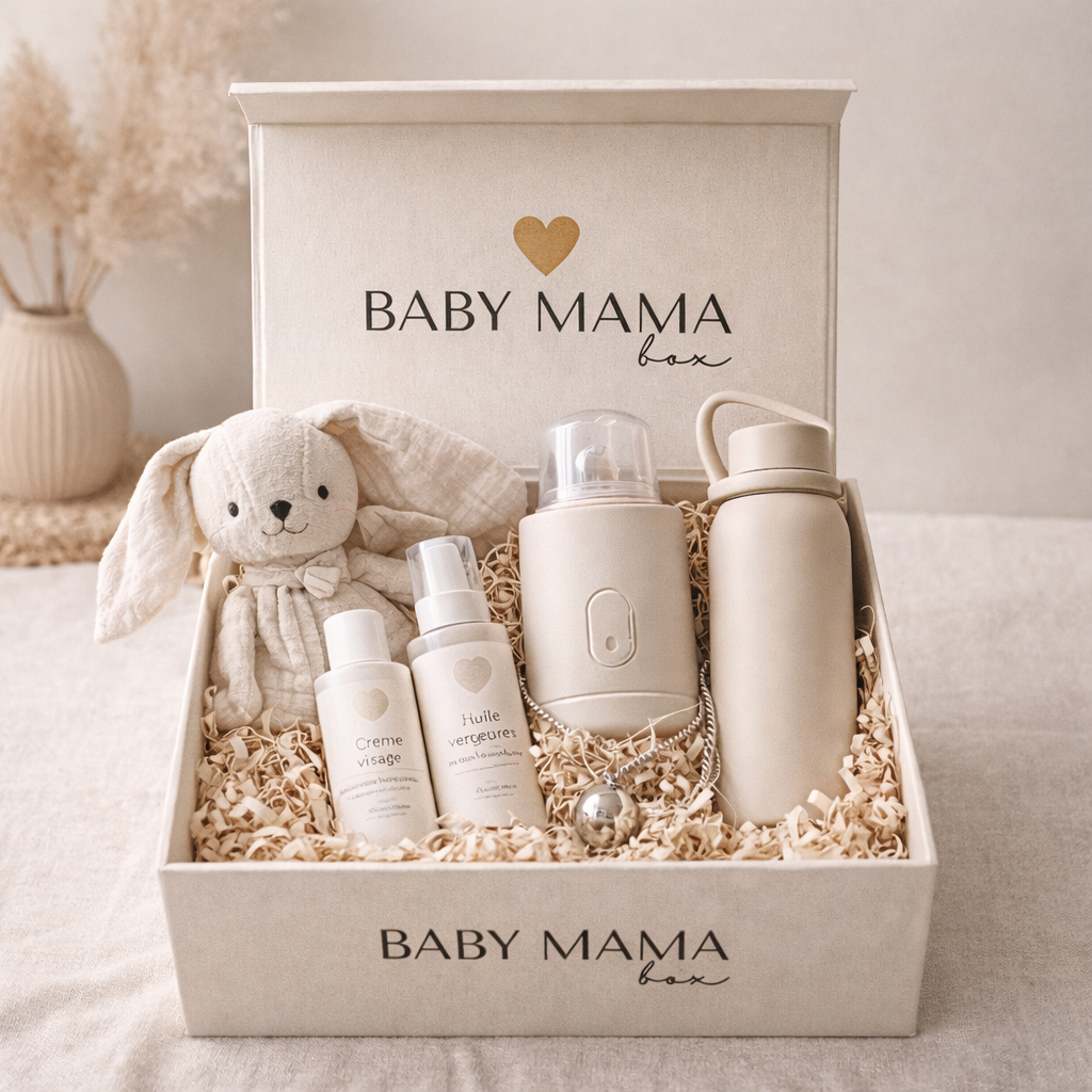 À l’intérieur : des essentiels pour maman et bébé, des produits de qualité, utiles et réconfortants, sélectionnés avec amour.